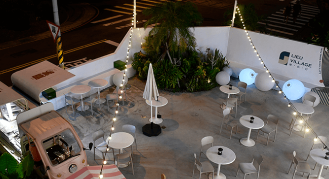 除了餐廳內部用餐外,陸伍村的廣場還會設置桌椅,讓民眾可以坐在外面享用美食及聚會聊天,到了晚上還會將燈串點亮,整體氛圍非常浪漫,雖然面積比較小但五臟俱全,而且鄰近高鐵站,生活機能非常方便,晚上可以前來覓食,享受竹北的晚風。